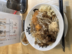 【期間限定麺】背脂生姜醤油チャーシュー 1,250円 背脂プラスで、こっってりコク旨!!チャーシューもたっぷり…♡ 濃いめの醤油味と生姜のさわやかな風味が絶妙にマッチした生姜醤油に、 きめ細かな背脂をプラスしたこってりな旨さが際立つ。 器を埋めるチャーシューが嬉しい一杯!! ラーメンの種類 汁あり 味の種類 醤油 ダシの種類 動物系 麺のタイプ ちぢれ 中太 アクセスRanking -- クチコミによる評価 -- クチコミを投稿 お気に入りに登録 今すぐログイン。アカウントを作成する場合はこちら。 今すぐログイン。アカウントを作成する場合はこちら。 このメニューに関連したクチコミ 評価が高い順 投稿の新しい順 で並べ替え 2025-01-10 14:33:48 【新崎店限定】ジャンクまぜそば 4.5 投稿者:あるび 【初来店】麺者風天新崎店、ジャンクまぜそば1000円(追い飯付)。いつも混んでいて入れないので、平日の中途半端な時間帯に初来店。新崎駅の目の前なので、店内には高校生の集団がいました。新崎店限定のジャンクまぜそばを注文しましたが、もやしが250gと多めに入っているのであっさりいただけます。ただ、食べ終わった後に汁が大量に残ったので追い飯は入れずにそのままいただきました。 ... 続きを読む>> 一覧を見る コメント件数:0件 他のメニュー NEW★新潟背脂まぜそば(追い飯付き)950円 【期間限定麺】生姜醤油ラーメン900円 【期間限定麺】生姜醤油チャーシュー1,200円 【期間限定麺】背脂生姜醤油ラーメン950円 【期間限定麺】背脂生姜醤油チャーシュー1,250円 【気まぐれゲリラ★限定麺】生姜味噌らーめん980円 【気まぐれゲリラ★限定麺】肉生姜味噌らーめん1,200円 辛肉まぜそば(追い飯付き)980円 パクパクパクチーまぜそば(追い飯付き)1,200円 お子様まぜそば400円