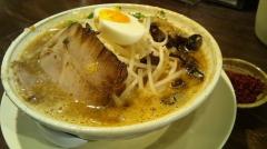 だるまやさんの次は、たまる屋さんへ。なんだか似た感じの音に聞こえますが、似て非なる感じ。こちらの味噌ラーメンは、3つのトッピング(辛味噌・バター・炒り生姜)からひとつを選択。ちょっと風邪気味かな?という感じなので今回は炒り生姜にしました。生姜風味の味噌ラーメンでなんだか元気出そうです。後半の味変のためにやはり餃子用の唐辛子ももらいますが、こちらは¥10円トッピングでたっぷりと来ました。最後は全部投入して、ピリ辛→中辛→大辛を楽しめます。