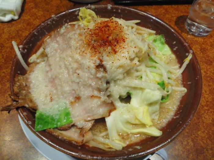 万人家さんには何回か訪れてますが、まだG麺は未食だったので今回はG麺をチョイス。がっつりG麺でもよかったんですが、一応お初だし最近は大食いが出来なくなってきてるので今回は様子見で(笑)。なので野菜の量も普通で注文しました。それでも400gはあるみたいですが。あ、麺の中盛は無料なので、そちらは中盛にしました。にんにく少なめで背脂多め、味は普通にしてみました。