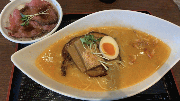 ってことで限定メニューの、限定塩(オマール海老×カラスミ)¥880と✨コチラも限定のローストビーフ丼¥180をいただきました❤️(*゚▽゚*)