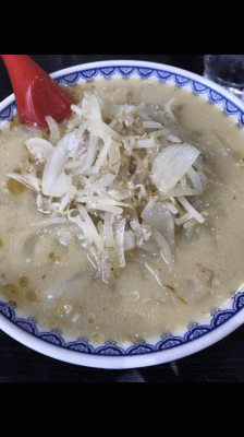 麺を食べ終わっても、玉ねぎが、まだまだ残っていて、完食まで時間かかるぅ!!