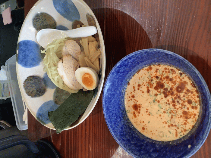麺屋ゆゆ多、【期間限定】冷やし担々つけ麺1000円。期間限定の冷やし担々つけ麺です。大盛無料ですが、普通盛です。値段は高めですが、麺量は少なめ、ただ、冷やしの担々つけ麺はあまり他では見ません。