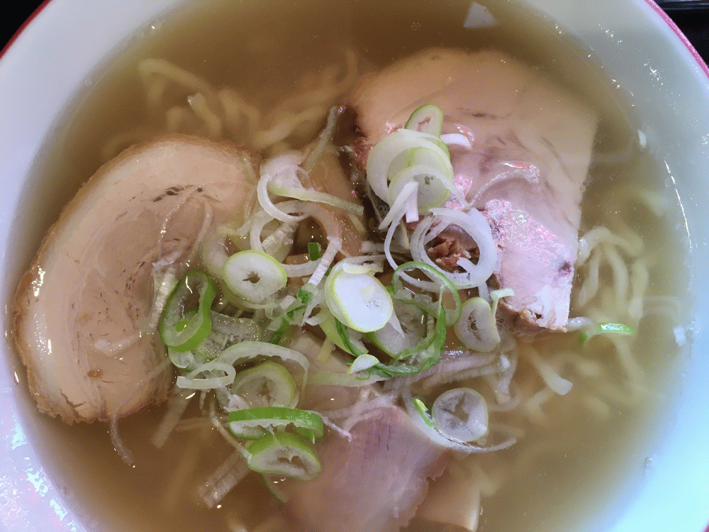 細平縮麺にあっさり醤油スープ。混雑してたせいか、麺がやや茹で過ぎでした。