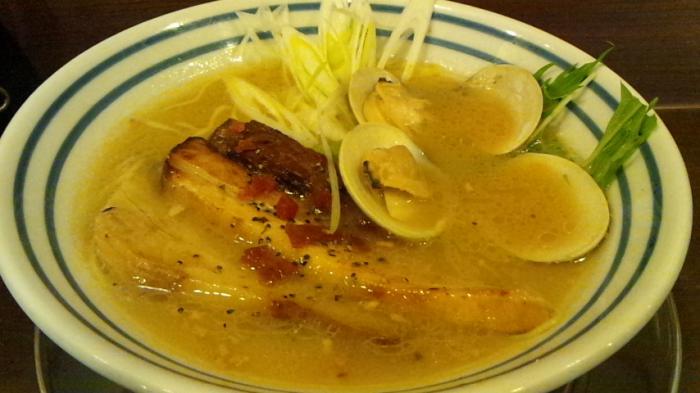 今回のコラボ麺!!貝そば。濃厚な貝だしの塩スープにノックアウト!って感じでしょうか。トッピングのハマグリもふっくらと大変にけっこうな仕上がりです。