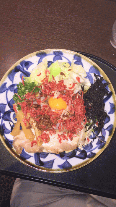 辛エビ、キャベツ、刻みネギ、もやし、シナチク、チャーシューが入ってます。