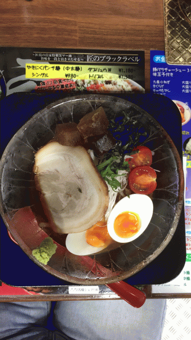 もやし、水菜、玉子、プチトマト、刻み海苔、チャーシューが入ってます。