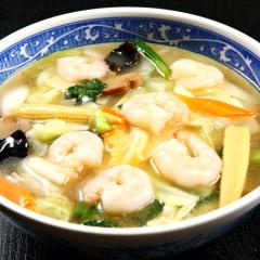 ぷりっぷりの海老をはじめ具材がたっぷり!!ごま油がふわっと香る五目ラーメンは定番人気メニュー。全ての世代に馴染む懐かしい味わい。他、海老ラーメン等麺類は全27種。サイドメニューも充実し、その使い勝手の良さから家族連れ、サラリーマン、OLさんなどあらゆる層に親しまれている。