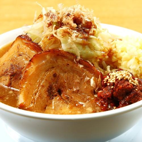 麺マッチョの人気No.1メニュー☆普通盛りでも麺200gのボリューム!!トッピング【野菜・にんにく・かつお・カラメ・あぶら】×【チョイマシ・マシ・マシマシ・バカマシ・マッチョマシ】はどれを選んでも無料!!腹ペコの学生もガッツリお腹を満たせます。