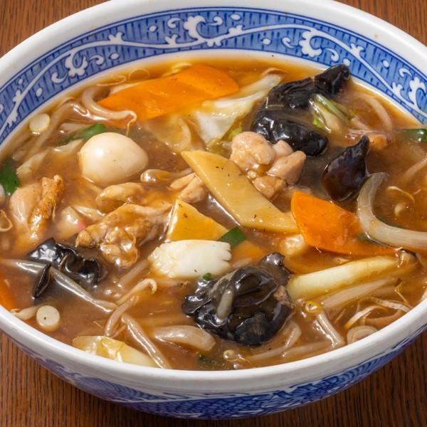 プリプリな海老と野菜の旨味と甘味がスープり混ざりあった優しい味わいの塩スープ。熱々の餡との絡みは抜群です。