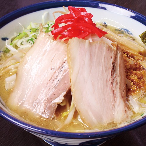ぶっちぎりの旨い一杯!!動物系と魚介のWスープは、ちょっぴりトロミがありこのトロミがなんともいえず丁度良く旨い!!柚子が少し入ってるため風味もアップ。シャキシャキのもやし、柔らかなチャーシュー、アクセントに揚げネギな どトッピングも満足!!