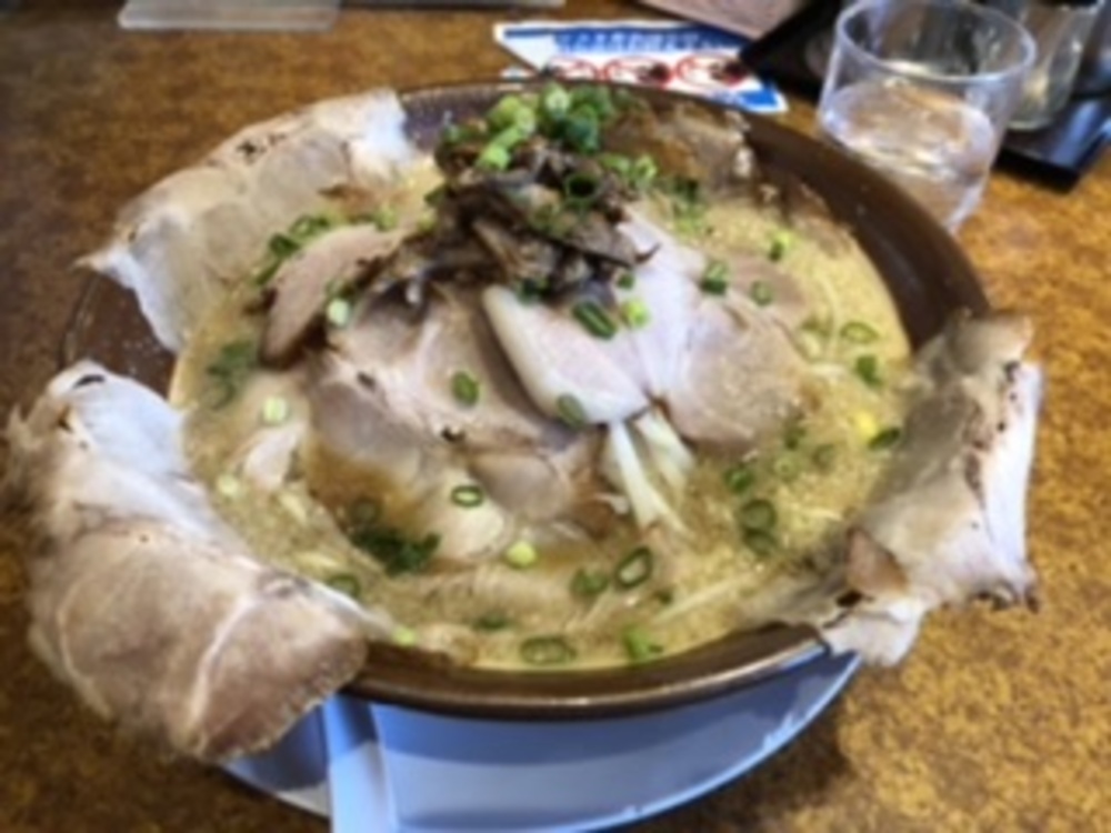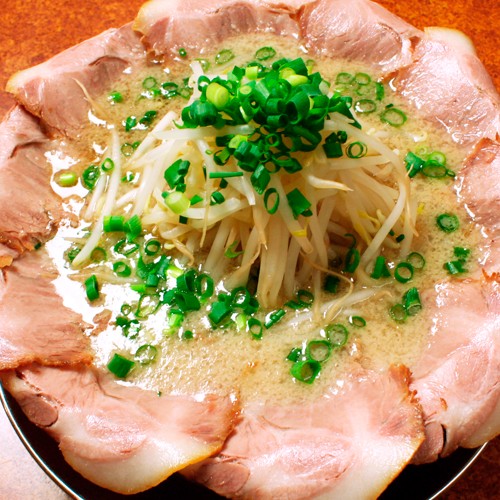 名物のチャーシューが器をいっぱいに囲むボリューム満点の1杯は万人家のNo.1メニューです。