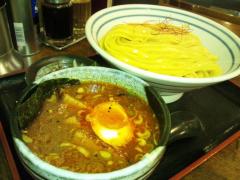 私の定番、辛つけ麺大盛。つけ麺・辛つけ麺は大盛無料なので、根性で大盛に。普通が240gとのことですが、大盛は300?360? 多分360gだと思いますが、特製の平幅広麺はスルスル入ります。食べてる時